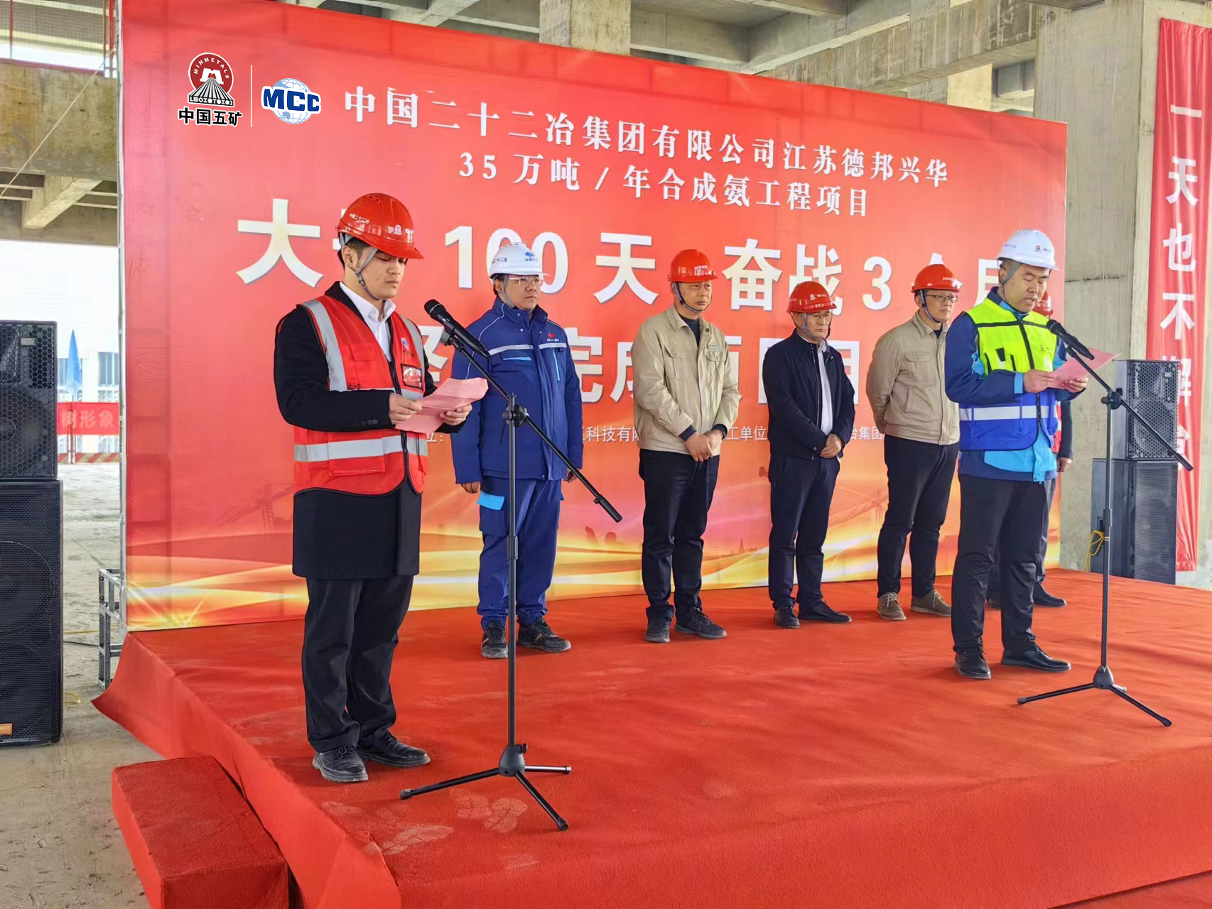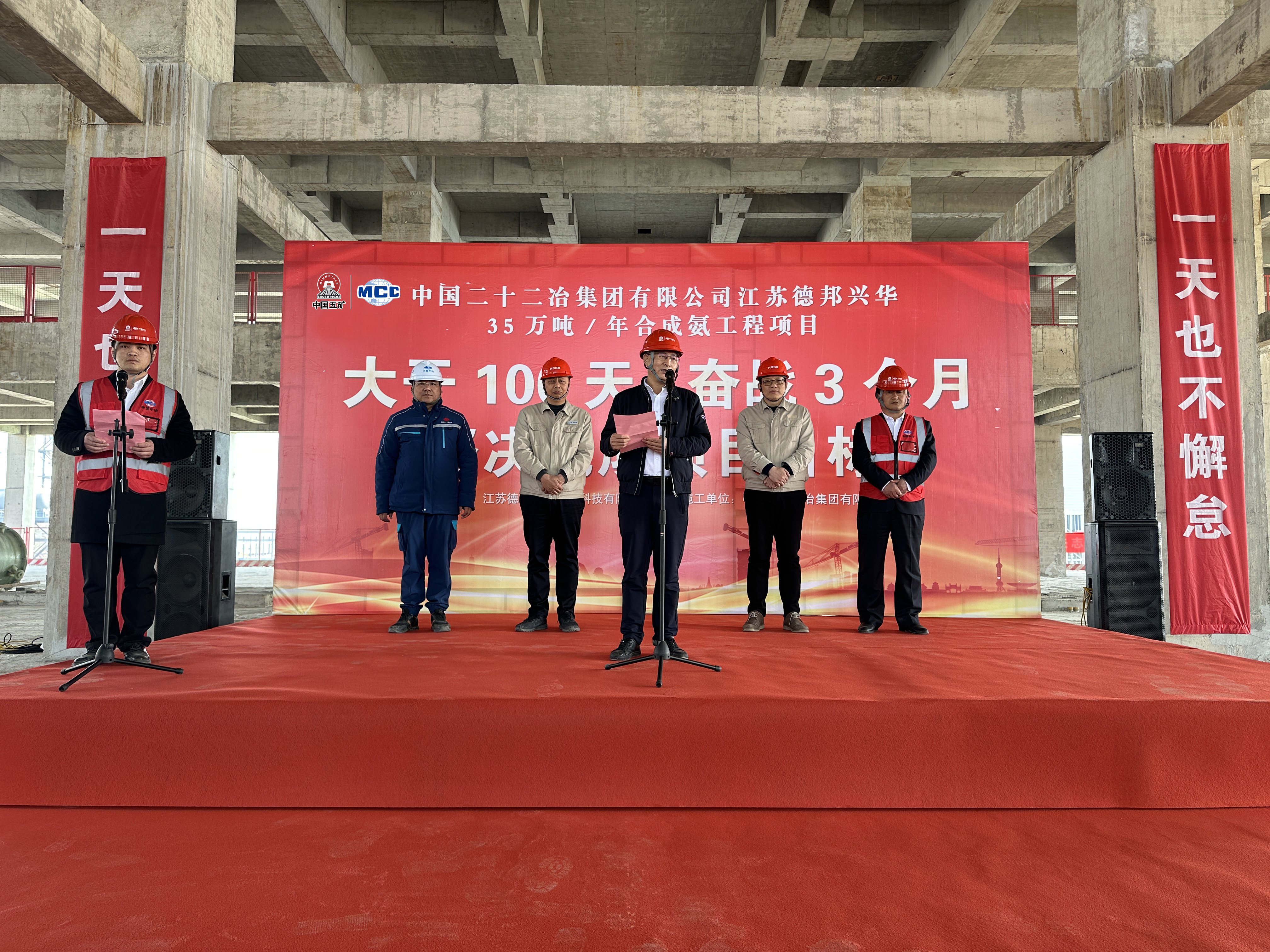 2月28日,華東公司連云港德邦興華化工項目舉行“大干100天,平穩有序保節點”勞動競賽啟動儀式,華東公司黨總支書記、工會主席、副總經理趙書國出席活動并發表講話。