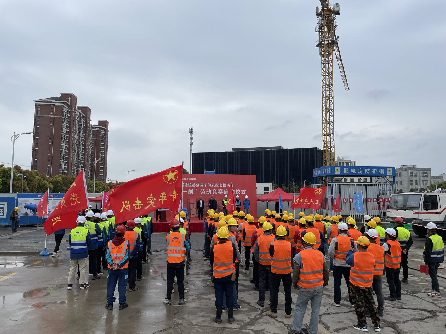 4月4日,中國二十二冶集團(tuán)華東公司在新建流感疫苗車間及配套樓項(xiàng)目舉辦“三比一創(chuàng)”勞動(dòng)競賽啟動(dòng)儀式。中國二十二冶集團(tuán)重大辦副指揮長張學(xué)軍,公司黨總支書記、工會(huì)主席、副總經(jīng)理趙書國,上海生物制品研究所有限責(zé)任公司李一成等出席本次活動(dòng)。