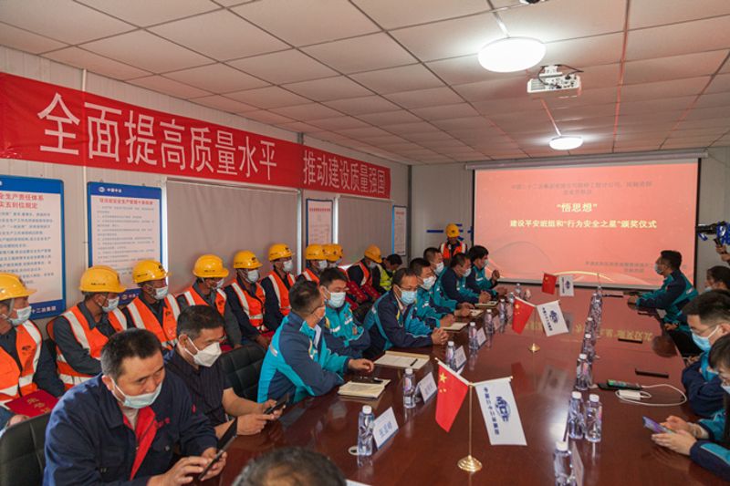 在“學黨史”環節,通過應急管理局工作人員講述抗美援朝戰爭中的英雄——黃繼光的感人事跡,重溫戰爭年代中國人民解放軍面對敵人的槍林彈雨,舍生忘死、浴血奮戰的大無畏精神;在“悟思想”環節,對平安班組和“行為安全之星”進行表彰,使大家提高安全生產意識,在施工中及時預見隱患、消除隱患,人人爭做安全標兵,為生產經營保駕護航;在“辦實事”環節,項目部成立“健康家”醫務室,并為施工人員義務理發、為職工發放按摩儀器,用實際行動履行黨全心全意為人民服務的宗旨;在最后的“開新局”環節,宣貫《“五不”行為專項整治行動實施方案》,強化項目履約能力,提升精細化管理水平;在項目施工現場,項目工程經理介紹項目概況、意義、工程難點、亮點,以及建設過程中的感人故事,讓與會人員感受企業的綜合實力以及建設人民滿意工程的責任擔當。