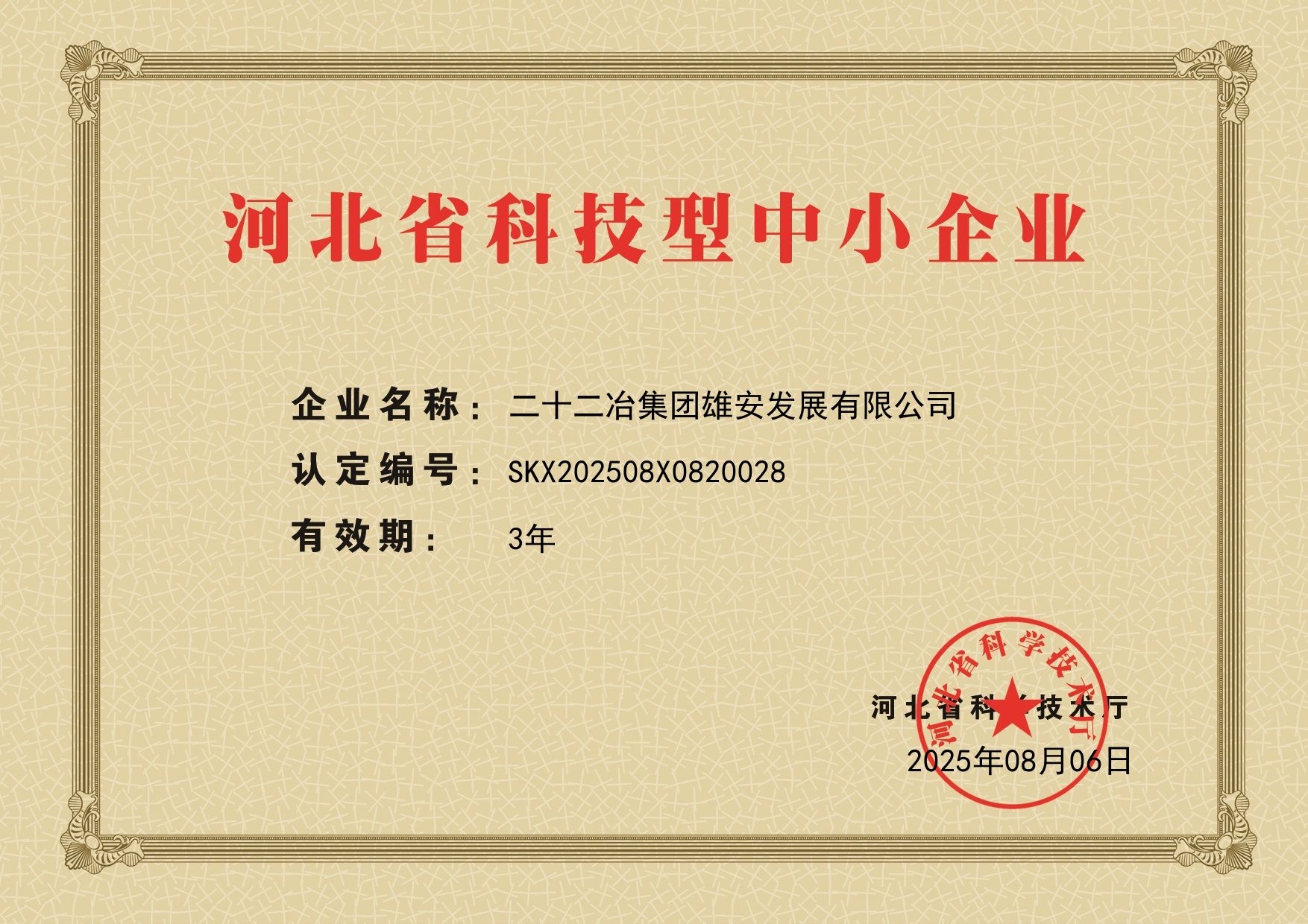 近日,雄安公司憑借在技術研發與創新實力的綜合表現,經河北省科學技術廳審核,順利通過河北省科技型中小企業認定。