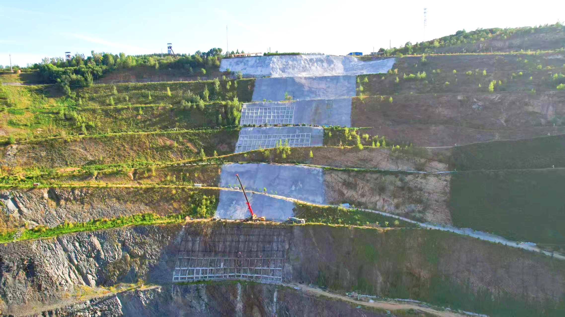 Ⅱ區(qū)混凝土噴坡是實(shí)現(xiàn)邊坡生態(tài)修復(fù)與防護(hù)的關(guān)鍵工序。施工過程中,團(tuán)隊(duì)采用專業(yè)液壓噴坡設(shè)備,分層次均勻噴射混凝土,噴射厚度嚴(yán)格控制在設(shè)計(jì)標(biāo)準(zhǔn)范圍內(nèi),確保混凝土與邊坡巖體緊密結(jié)合。Ⅳ區(qū)格構(gòu)梁作為邊坡結(jié)構(gòu)加固的重要組成部分,其施工質(zhì)量直接關(guān)系到整個(gè)邊坡的穩(wěn)定性。在Ⅳ區(qū)格構(gòu)梁節(jié)點(diǎn)施工過程中,原材料方面,對(duì)進(jìn)場(chǎng)的鋼筋、混凝土等材料進(jìn)行嚴(yán)格抽檢,確保所有材料符合國家規(guī)范及項(xiàng)目設(shè)計(jì)標(biāo)準(zhǔn),堅(jiān)決杜絕不合格材料入場(chǎng)。鋼筋加工環(huán)節(jié),項(xiàng)目管理人員根據(jù)節(jié)點(diǎn)設(shè)計(jì)圖紙精準(zhǔn)下料,連接強(qiáng)度等指標(biāo)均經(jīng)過現(xiàn)場(chǎng)檢測(cè),確保滿足結(jié)構(gòu)受力要求。